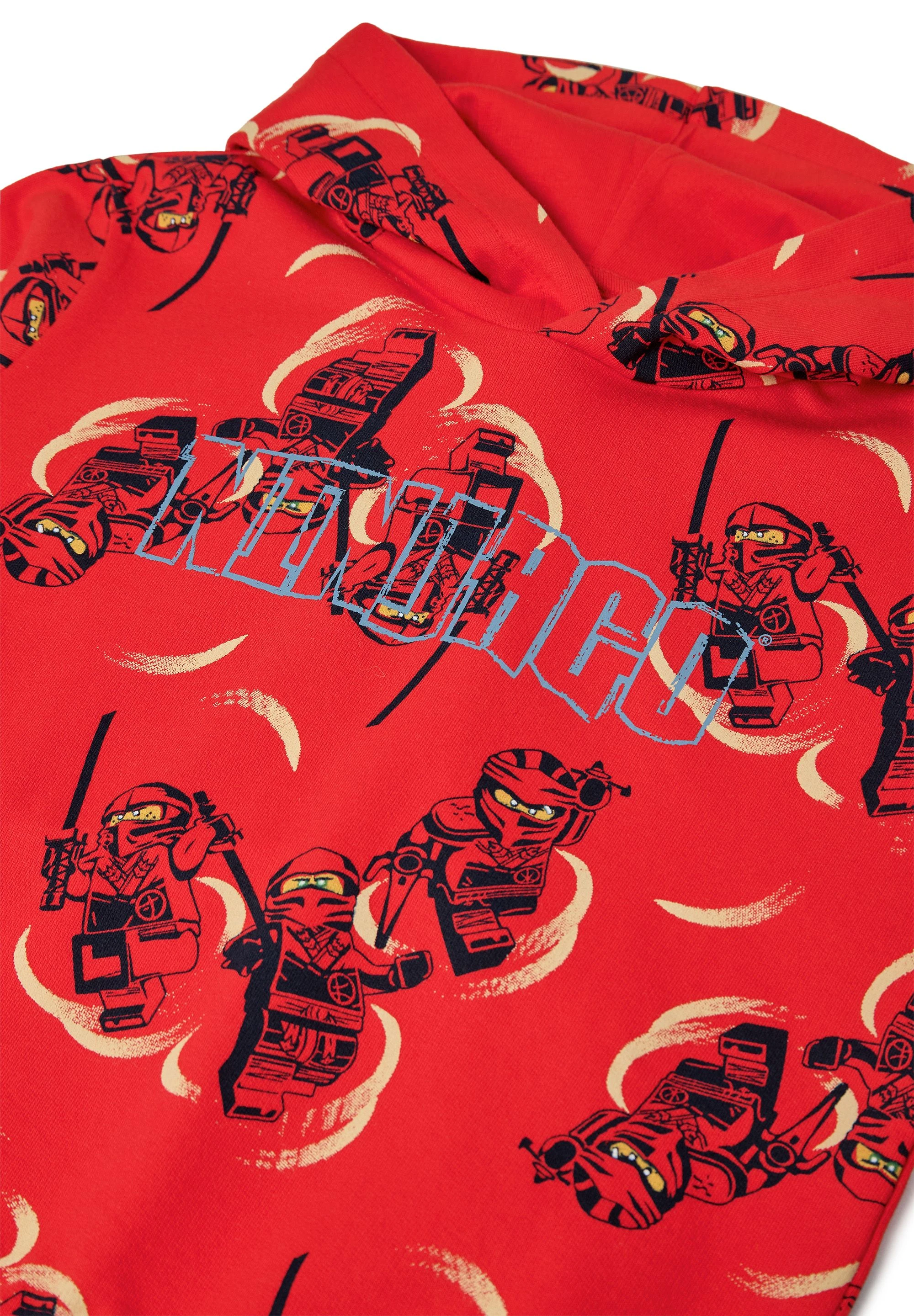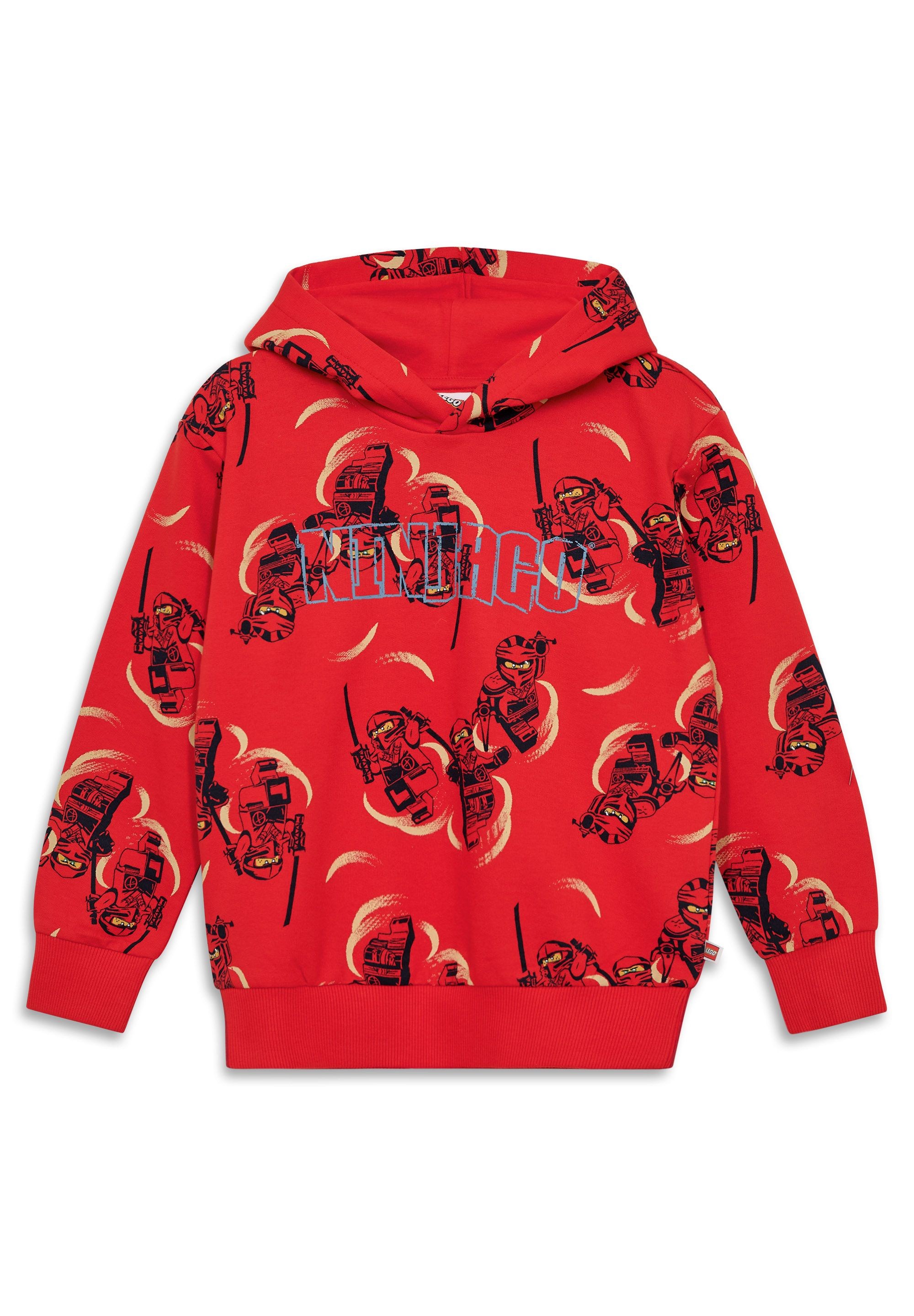 Bluza LEGO NINJAGO to wygodna bluza z kapturem dla chłopców, stworzona z myślą o fanach przygód w stylu ninja. Intensywny czerwony kolor, nadruk na całej powierzchni z motywem LEGO NINJAGO oraz duży napis „NINJAGO” z przodu dodają charakteru codziennym stylizacjom. Miękka bawełniana dzianina dresowa i kaptur podszyty dżersejem pomagają utrzymać komfort przez cały dzień.