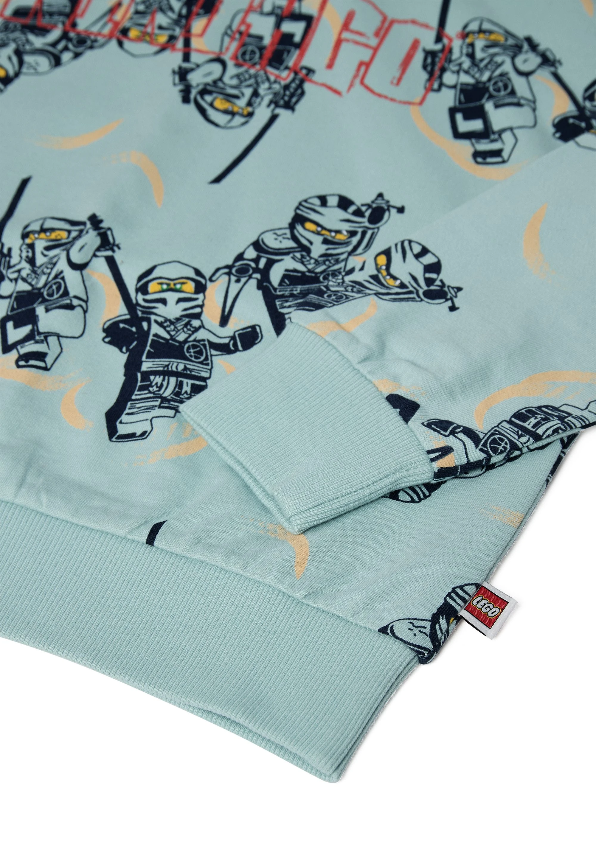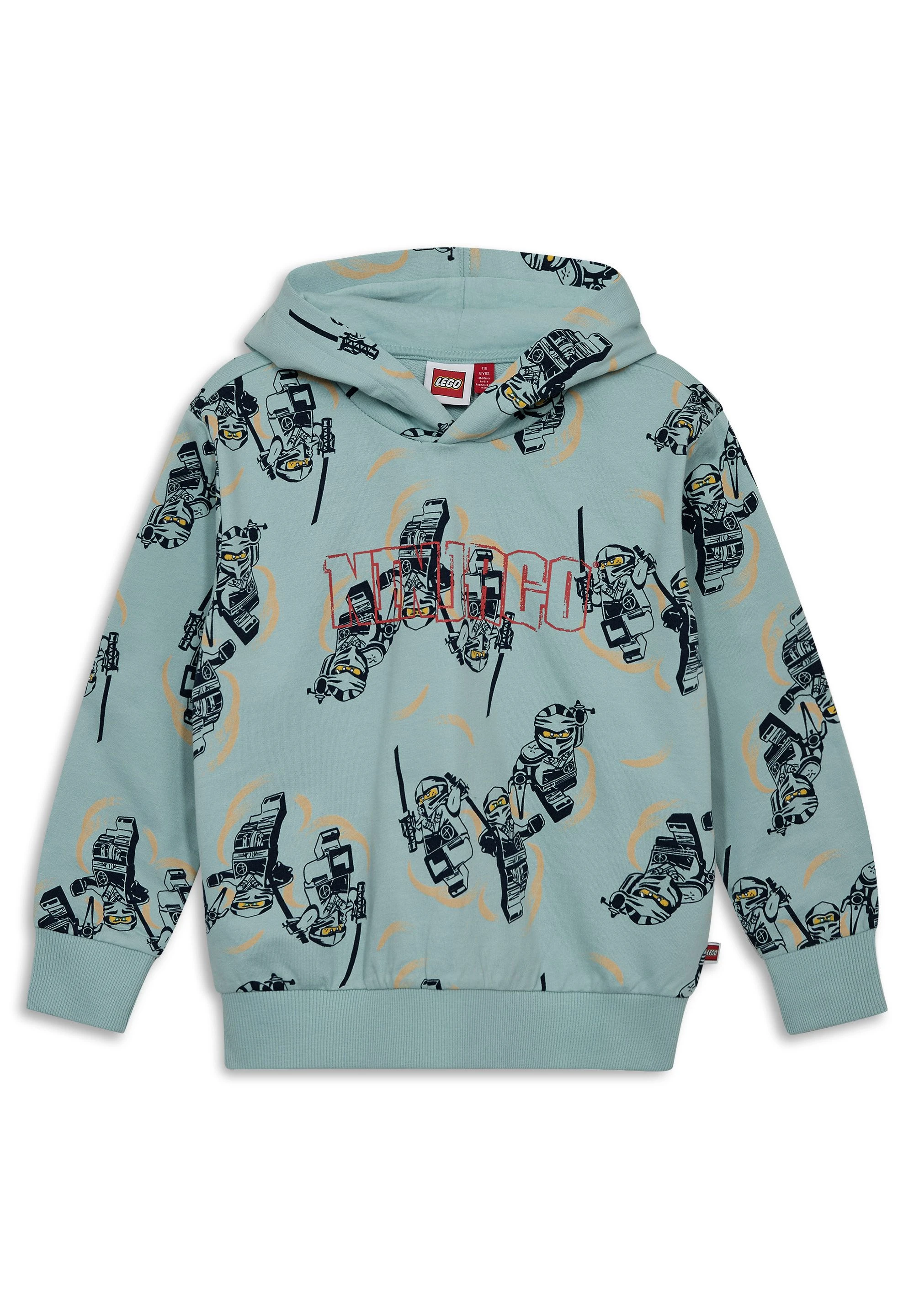 Bluza LEGO dla chłopców to wygodna bluza z kapturem dla fanów LEGO® NINJAGO®, która dodaje charakteru codziennym stylizacjom. Jasny turkus/mięta łączy się z granatowo-czarnym nadrukiem postaci oraz czerwonym akcentem dużego napisu „NINJAGO” z przodu. Miękka, nieczesana dzianina dresowa z bawełny i kaptur podszyty dżersejem dają przyjemne uczucie noszenia przez cały dzień.