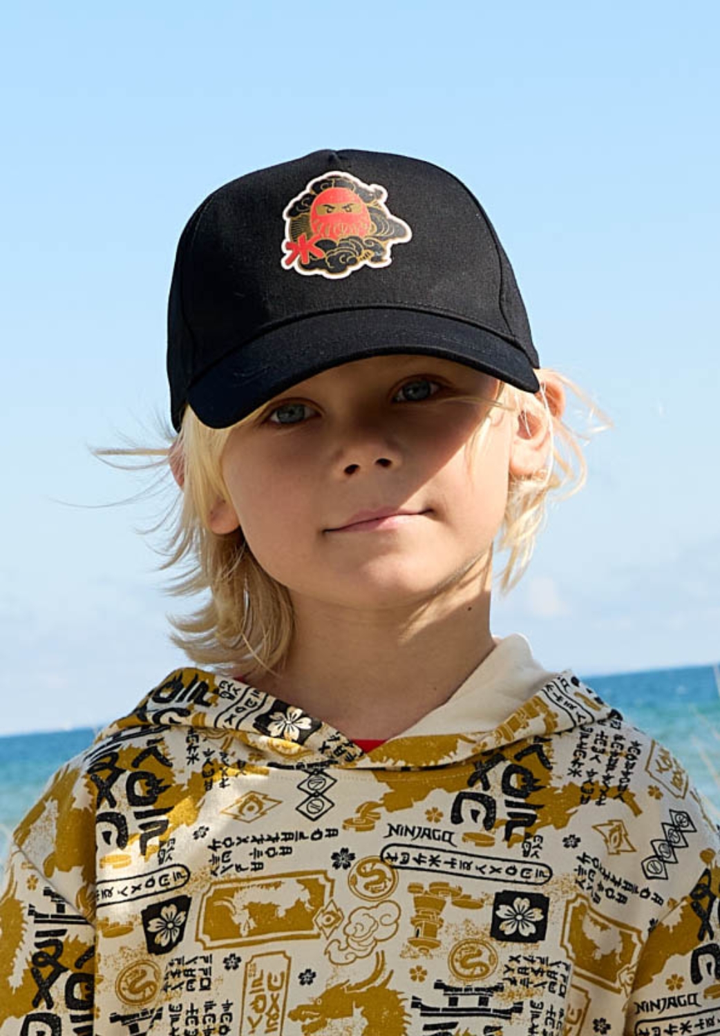 Czapka z daszkiem LEGO NINJAGO® dla chłopców to wygodny dodatek do codziennych stylizacji. Czarny, 6-panelowy fason z zakrzywionym daszkiem wyróżnia się mocnym motywem NINJAGO z przodu i złotymi detalami. Regulacja na rzep ułatwia szybkie dopasowanie obwodu, żeby czapka dobrze leżała.