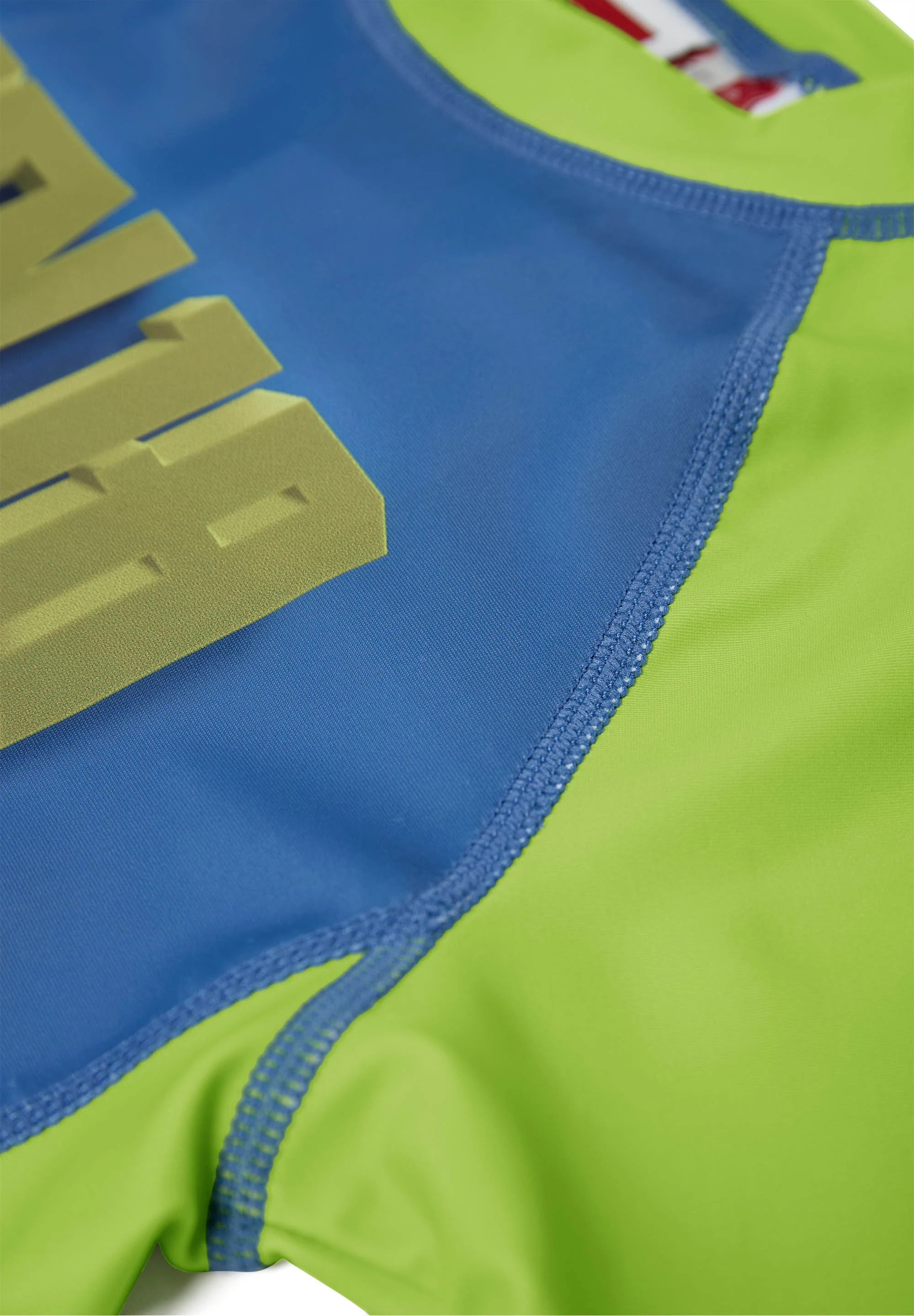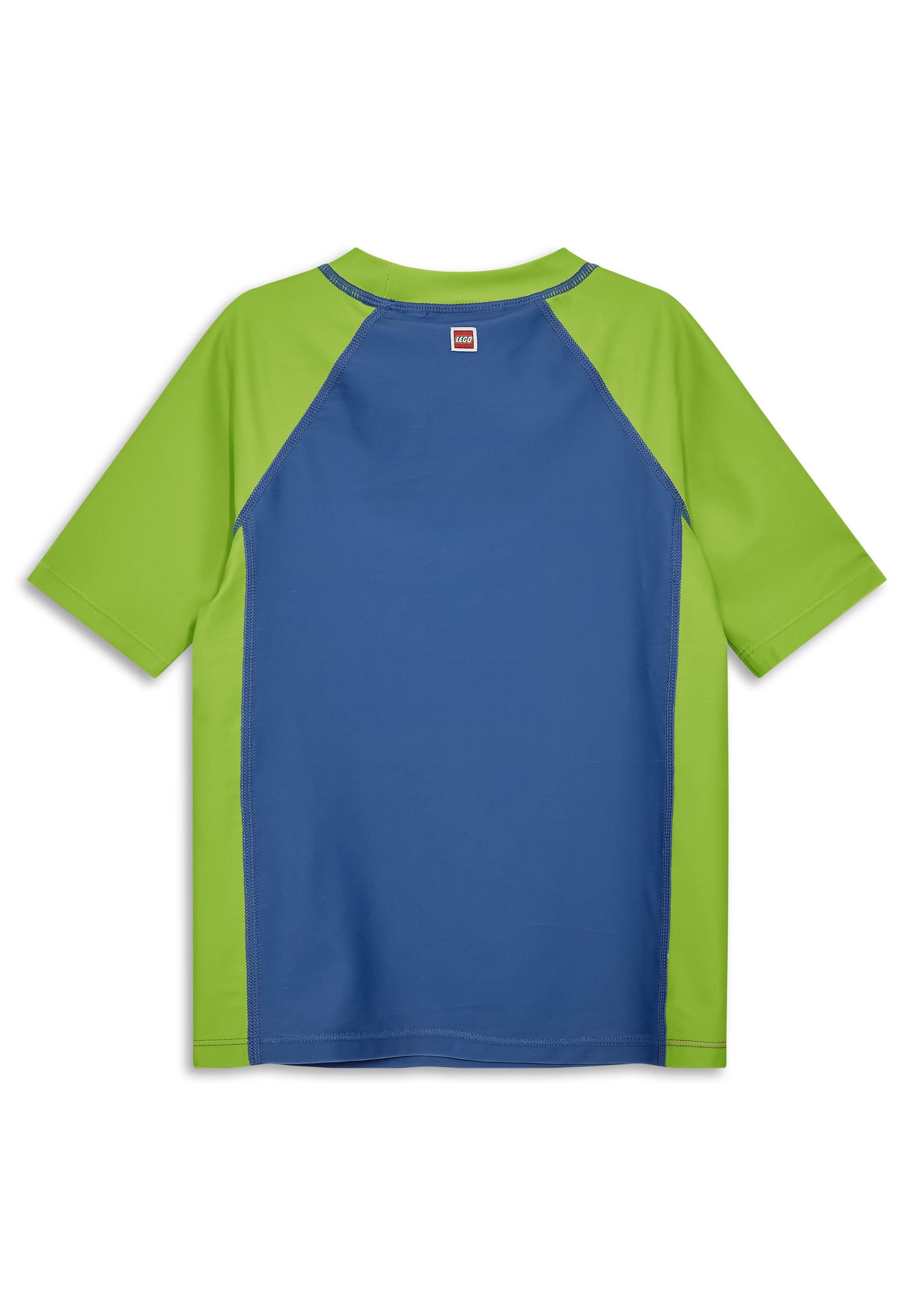 Koszulka kąpielowa LEGO® NINJAGO® to wygodna propozycja dla chłopców, którzy lubią klimat ninja na plaży i na basenie. Ma krótki, raglanowy rękaw, prosty krój oraz miękki, elastyczny materiał, który ułatwia swobodne poruszanie się w wodzie i podczas zabawy poza nią. Limonkowo-niebieskie panele, kontrastowe lamówki i duży nadruk „NINJAGO” z postaciami wyróżniają ją na tle klasycznych koszulek do pływania.