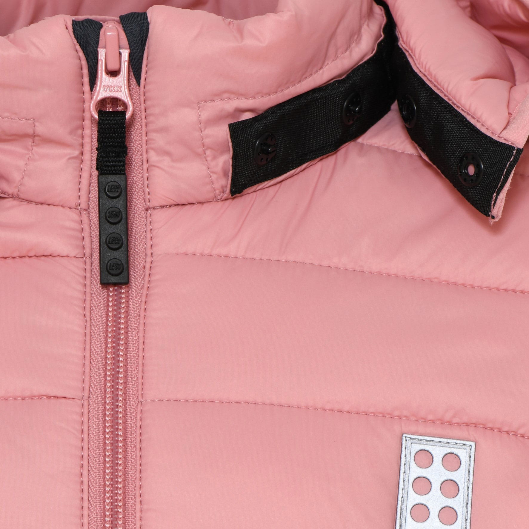 Kurtka LEGO to lekka, pikowana kurtka przejściowa dla dziewczynek i chłopców — dobra na dni, gdy temperatura potrafi zmieniać się z godziny na godzinę. Ocieplana konstrukcja z poziomym pikowaniem, wysoka stójka i kaptur pomagają utrzymać komfort w chłodniejsze i wietrzne chwile. Pudrowy róż z czarno-białymi detalami oraz naszywki w stylu klocków LEGO dodają jej charakteru, a elastyczne wykończenia dołu i mankietów ułatwiają dopasowanie.
