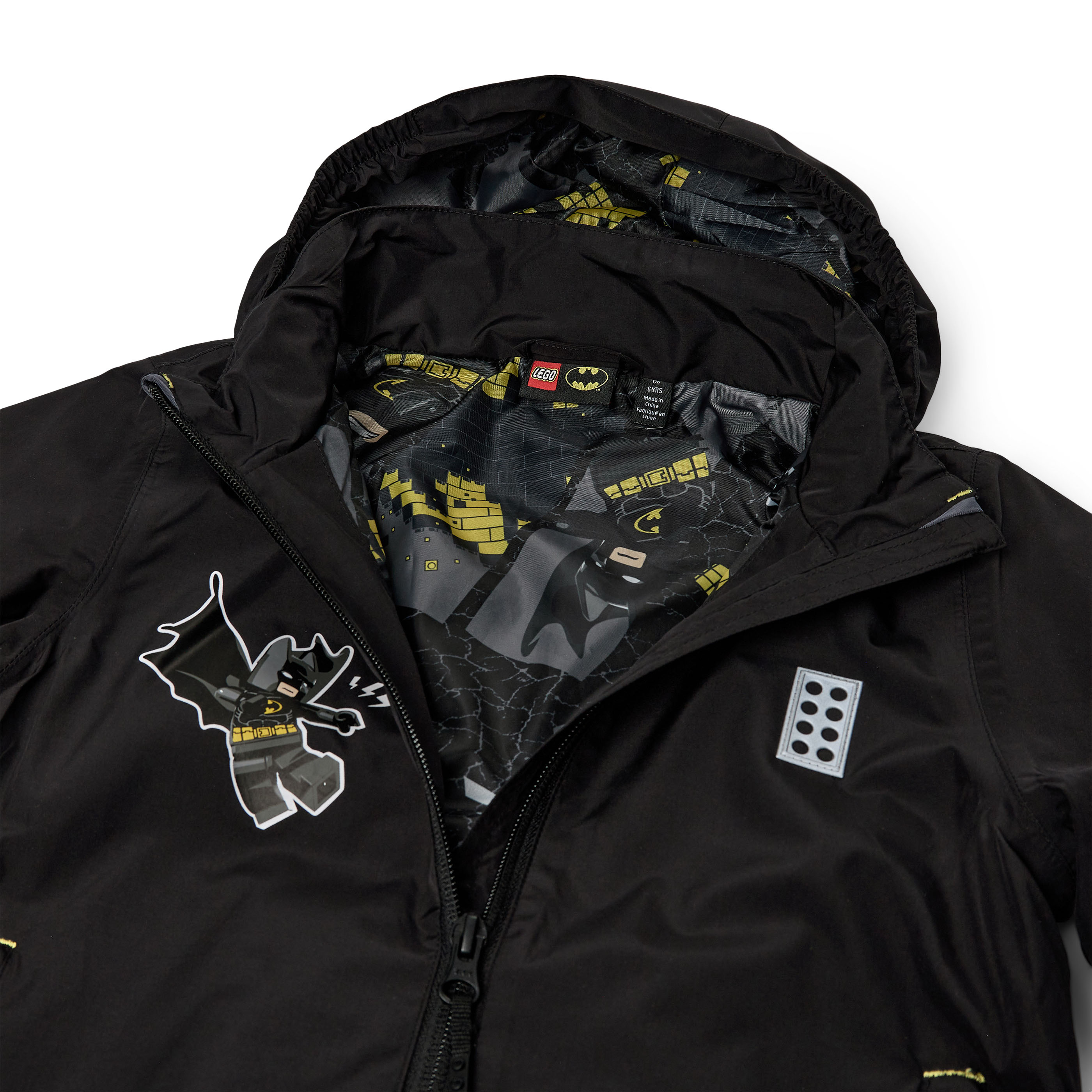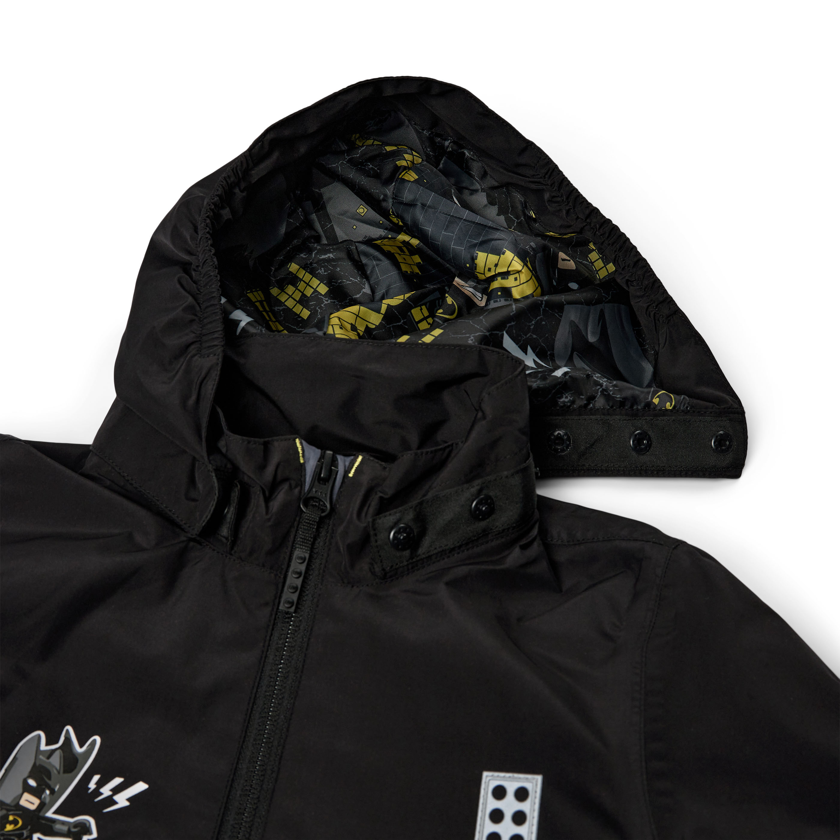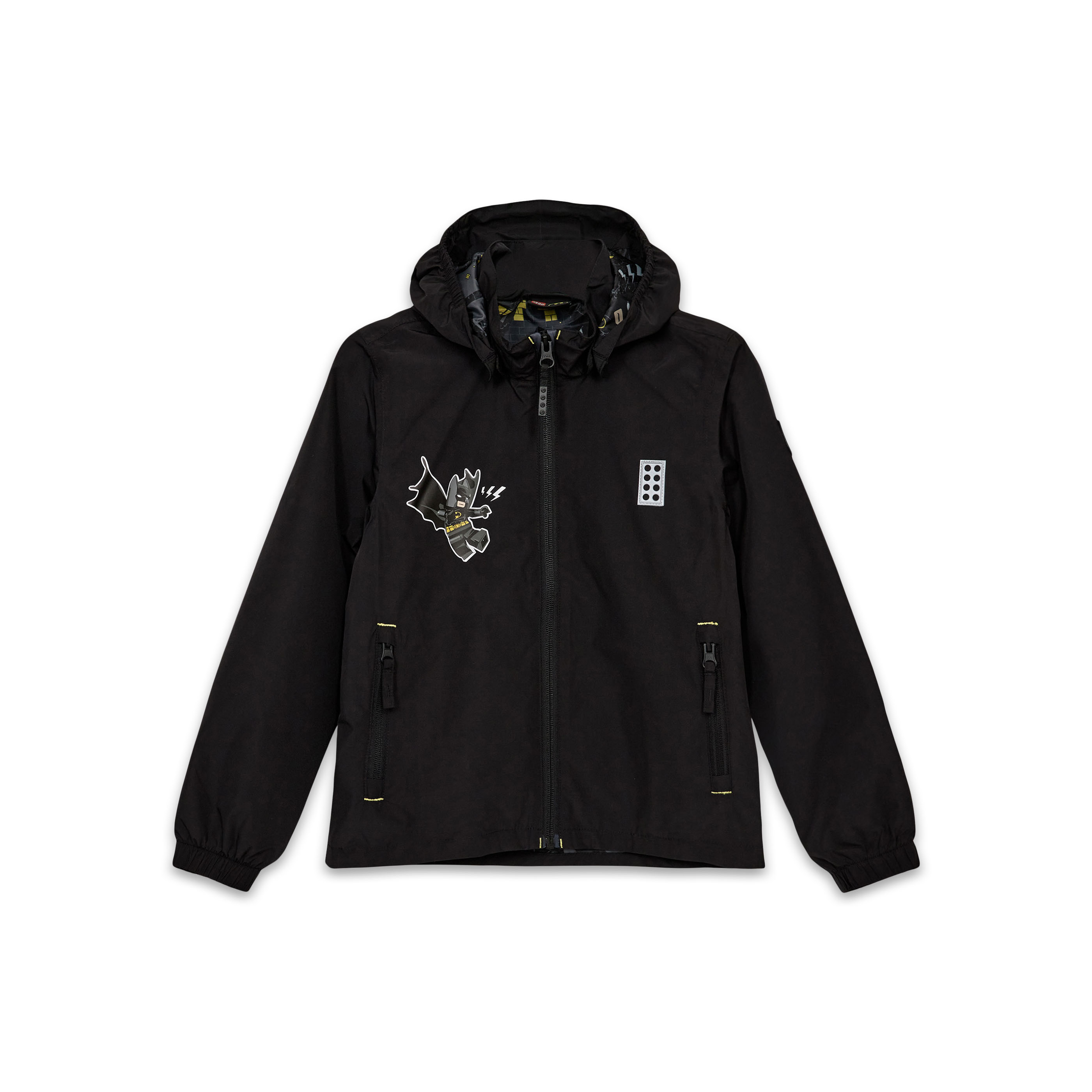 Kurtka LEGO Batman to dziecięca kurtka przejściowa przeciwdeszczowa na zmienną, wiosenną pogodę. Z zewnątrz jest czarna i stonowana, a po rozpięciu odsłania kolorową podszewkę z motywem Batmana – także w kapturze. Prosty fason, wysoki kołnierz oraz kieszenie zapinane na zamek ułatwiają codzienne użytkowanie.