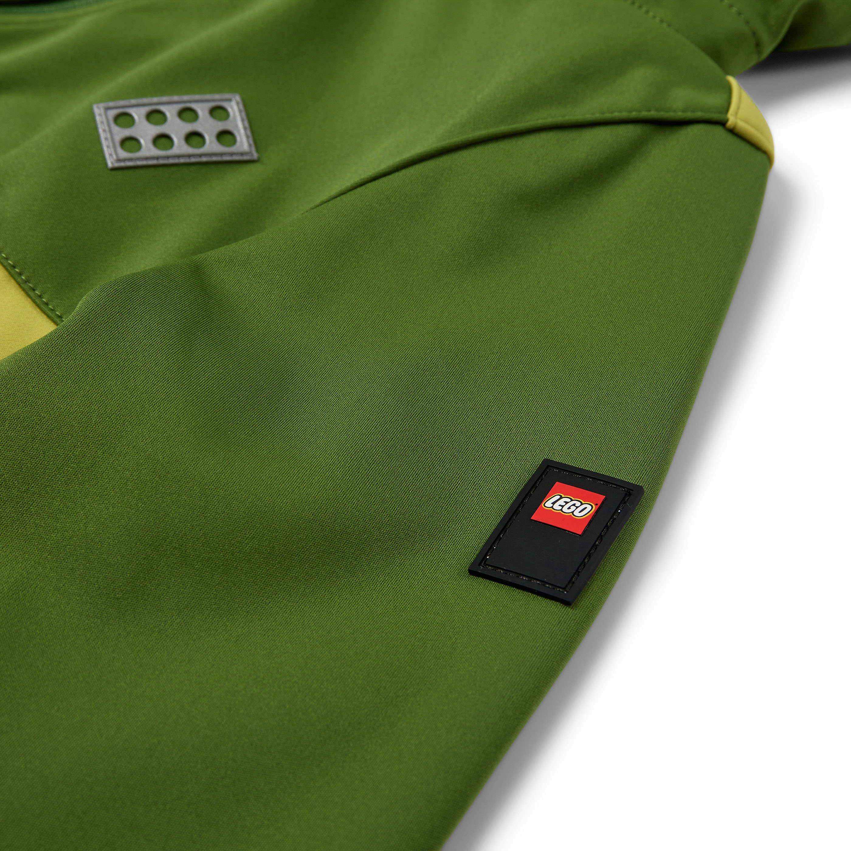 Kurtka dziecięca LEGO to lekka kurtka softshellowa na wiosnę i lato, która pomaga osłonić przed wiatrem i przelotnym deszczem. Prosty krój do bioder, kaptur z miękkim, szarym wnętrzem oraz elastyczne wykończenia przy mankietach i dole ułatwiają dopasowanie i utrzymanie komfortu w ruchu. Oliwkowa zieleń z jasnożółtymi panelami daje wyrazisty, sportowy wygląd, a kieszenie na zamek trzymają drobiazgi pod ręką.