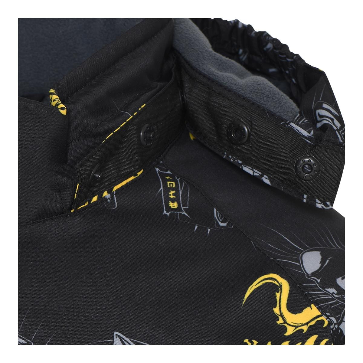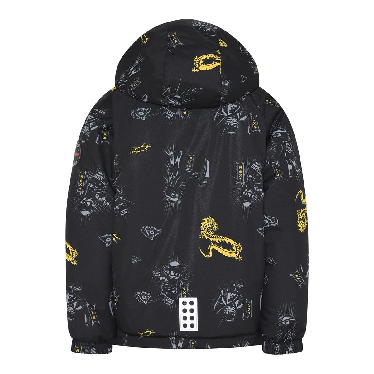 Kurtka zimowa LEGO to propozycja dla dzieci, które chcą nosić motywy LEGO® NINJAGO® i jednocześnie mieć ochronę przed zimową pogodą. Pikowana, ocieplana konstrukcja z miękką podszewką z mikropolaru pomaga utrzymać ciepło, a czarny kolor z szaro-żółtymi akcentami i nadrukiem na całej powierzchni wyróżnia styl. Wysoki kołnierz, elastyczne mankiety oraz regulacja u dołu ułatwiają dopasowanie.