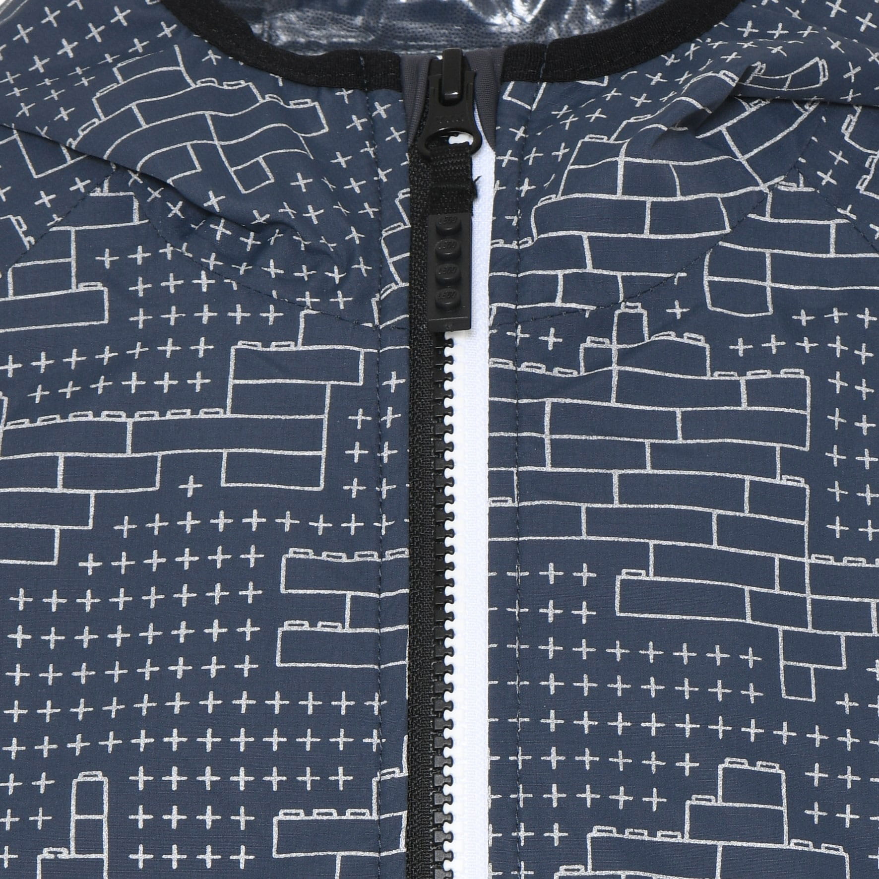 Kurtka LEGO to dziecięcy anorak zakładany przez głowę, zaprojektowany z myślą o wygodzie na co dzień. Ma zintegrowany kaptur oraz luźny krój do bioder, dzięki czemu łatwo narzucisz ją na bluzę, a dziecko zachowa swobodę ruchu. Granatowa, gładka tkanina o przeciwdeszczowym wyglądzie oraz biały nadruk z motywem „klocków” wyróżniają ją w drodze do szkoły i na spacerze.