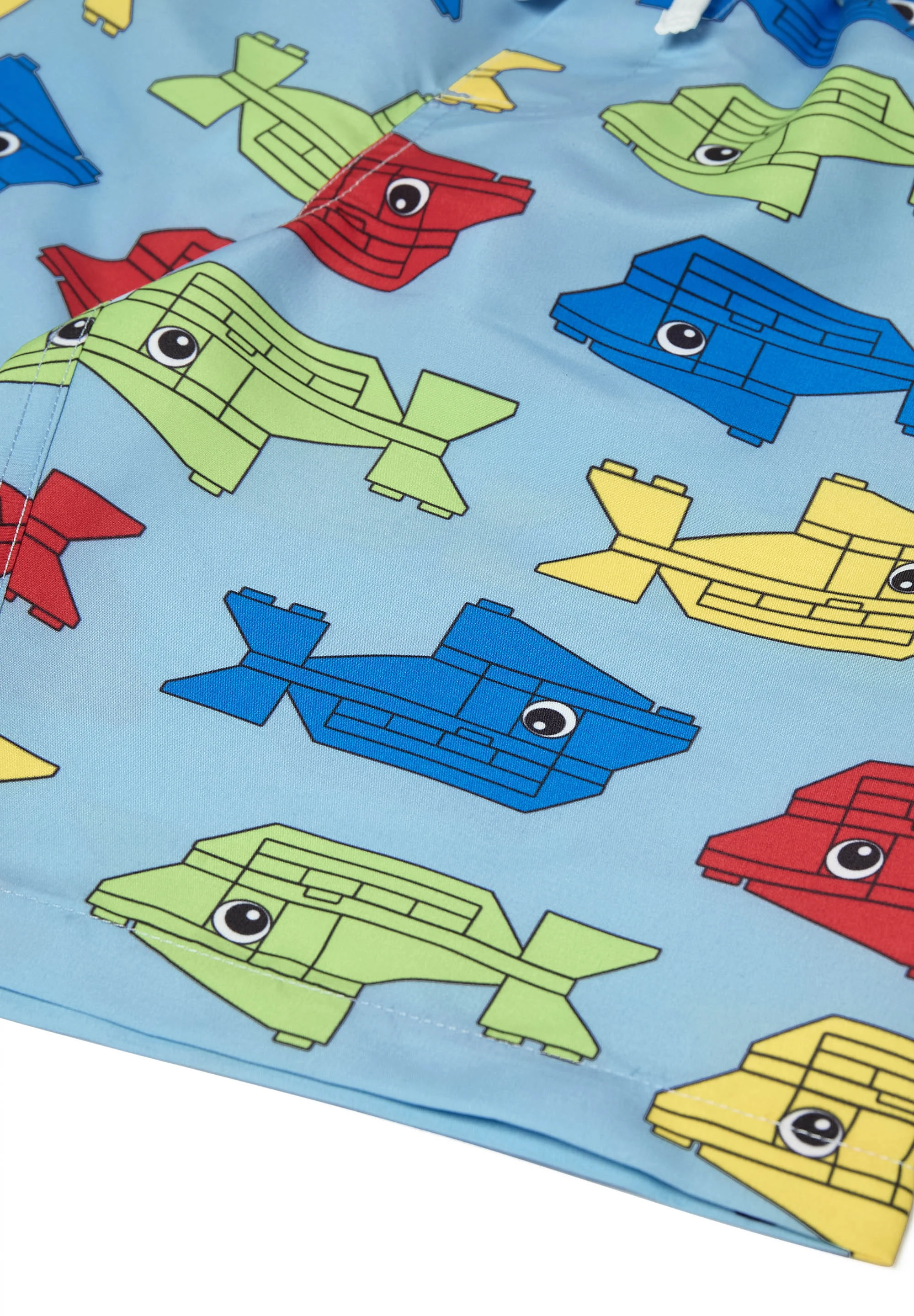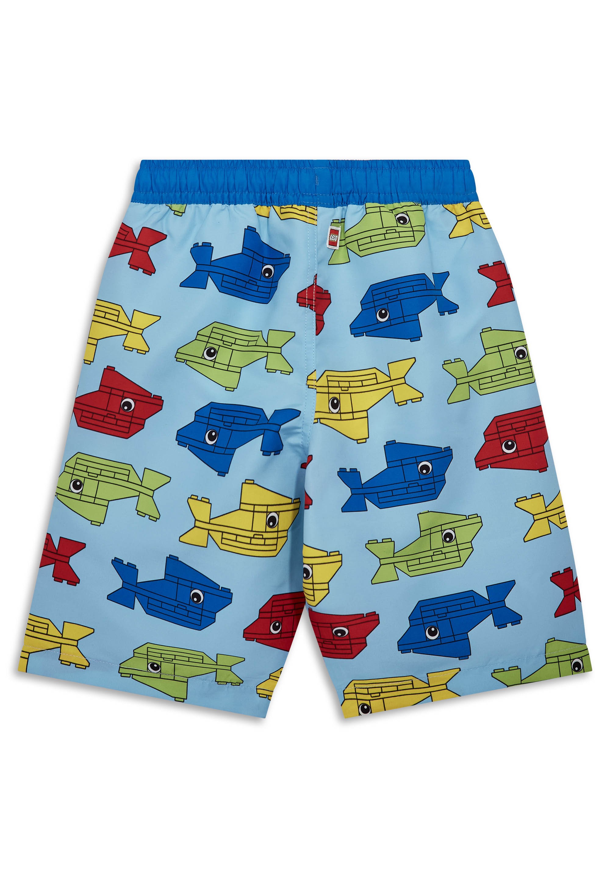 Szorty kąpielowe LEGO to chłopięce spodenki stworzone na pełne zabawy dni na basenie i plaży. Luźny krój do połowy uda, elastyczny pas w kontrastowym granatowym kolorze oraz biały sznurek pomagają szybko dopasować je do sylwetki i ruszać prosto do wody. Całościowy, powtarzalny nadruk rybek z klocków LEGO dodaje energii każdej wakacyjnej stylizacji.